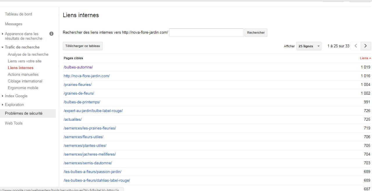 Vous pouvez aussi via le biais de Google Search Console, analyser le maillage de liens internes au sein de votre site internet. Sur chaque page, vous saurez le nombre de pages internes qui pointent vers elle. Ainsi vous pourrez aisément piloter votre stratégie de linking interne, optimiser la structure de votre arborescence et éviter une perte du jus SEO. A noter que, plus une page a de liens qui convergent vers elle, plus Google la valorisera auprès de son moteur de recherche.