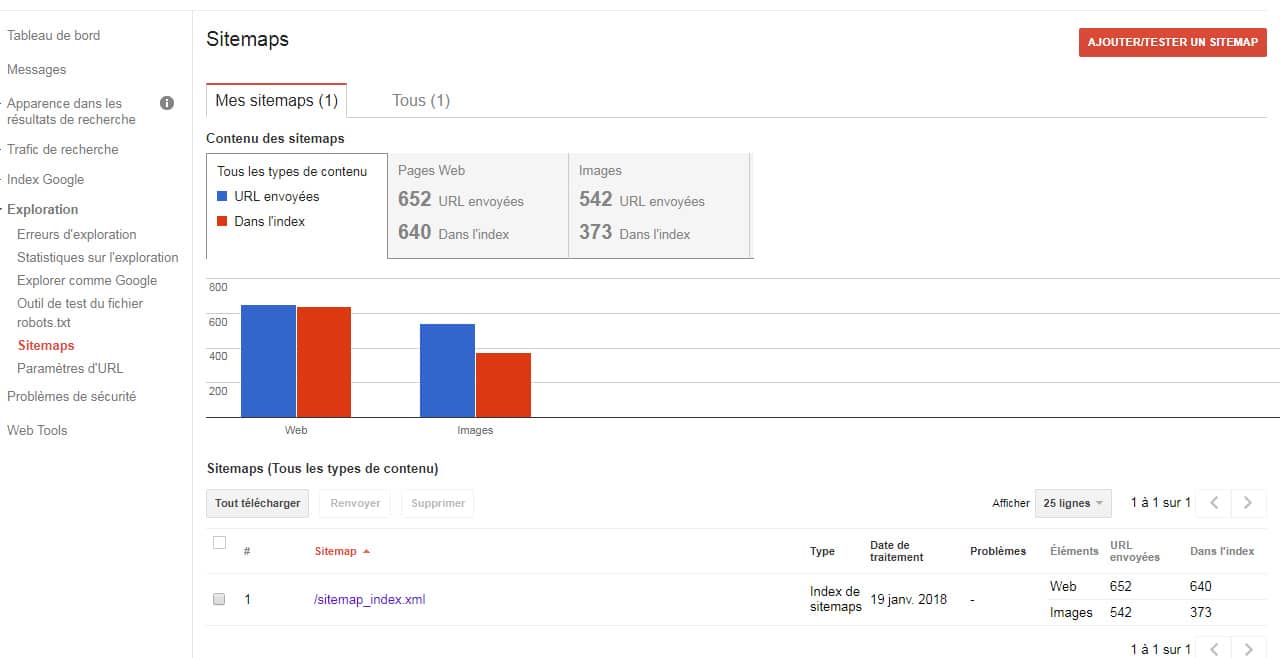 Ici vous visionnez comment les bots de Google perçoivent votre site internet et comment ce dernier scrawl l’ensemble de vos pages de contenus. Il faut savoir qu’avant que vos pages soient indexées, Google explore inlassablement vos pages, du textes, aux images en passant par les liens (d’où l’utilité d’un maillage interne dense et homogène).