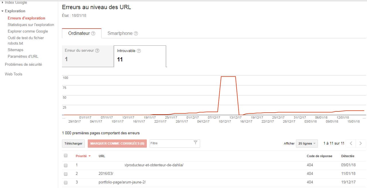 Si le crawlage de votre site est compliqué, alors l’indexation, puis le référencement de vos pages sera difficile. Pour le faciliter, il faut avant tout isoler les erreurs rencontrées par les bots de Google. Ici vous retrouverez une liste de l’ensemble des pages qui pointent vers une page erreur 404. Des redirections 301 seront à prévoir pour optimiser votre référencement et améliorer l’expérience des utilisateurs.