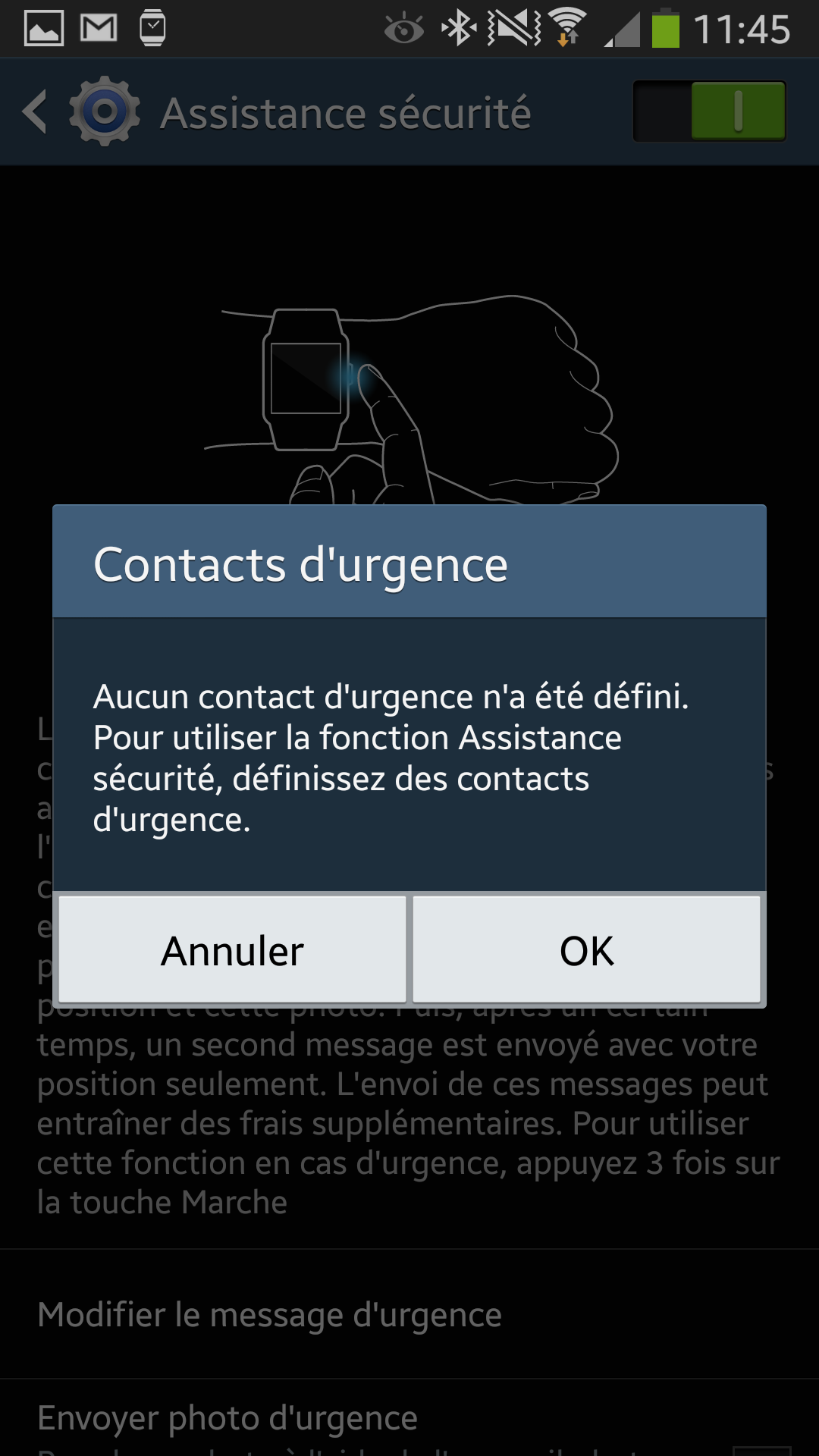 Comme je vous l’expliquais dans le test de la Galaxy Gear, le bouton Power permet non seulement d’allumer ou d’éteindre sa montre mais également d’exécuter d’autres actions que je vous ai également résumé dans mon dernier article sur la Galaxy Gear. Je pensais avoir été exhaustif dans la liste des actions possibles mais ce bouton Power cache encore d’autres secrets! Parmi eux, les ingénieurs de Samsung ont intégré la possibilité d’envoyer un message d’urgence directement depuis la Galaxy Gear! En effet, votre Galaxy Gear peut envoyer un message d’urgence incluant une photo et votre position actuelle lorsque vous appuyez 3 fois sur le bouton Marche/Arrêt, voici comment configurer ce message :