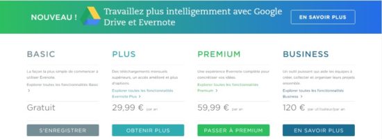 Pour le compte « Plus », on passe d’un abonnement de 19,99€ à 29,99€ par an tandis que le « Premium » augmente pour passer de 39,99€ à 59,99€ par an. Le tarif d’Evernote Business n’est pas concerné par ces changements.