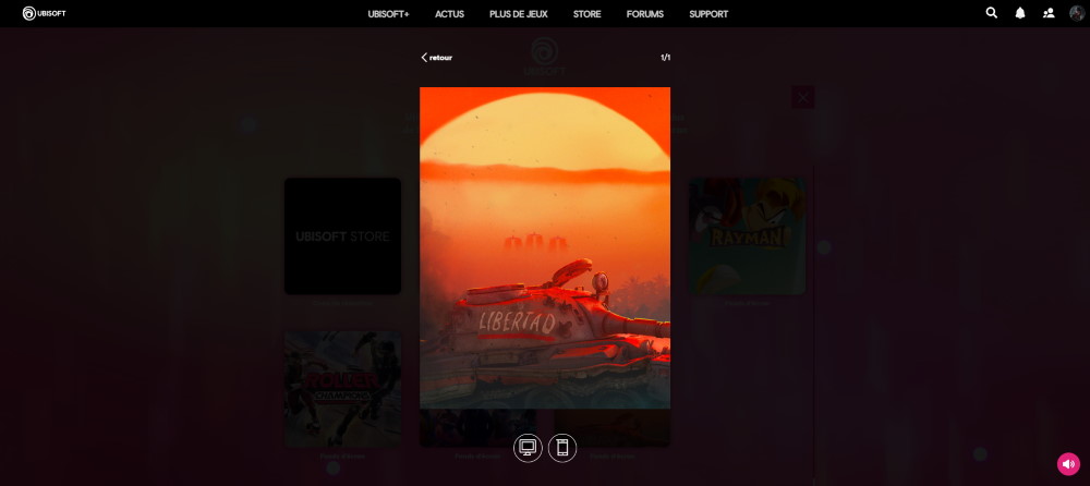 Il existe 6 décors différents et donc 6 titres mis en avant. Il s’agit de Watch Dogs: Legion, Rayman, Just Dance 2021, Assasin’s Creed Valhalla, Roller Champions et FarCry 6. A chaque changement de décor, vous débloquez la vignette correspondante et les fonds d’écran associés.