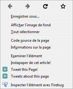 Toujours histoire d’améliorer l’expérience utilisateur, la fondation Mozilla a introduit de nouveaux boutons/icônes lors d’un clic droit sur une page dans Firefox. Ces derniers permettent d’effectuer un retour à la page précédente, d’avancer sur la page suivante, de rafraîchir ou de stopper la page selon si celle-ci est totalement chargée ou non, et enfin, de mettre la page/site dans les marques-pages.