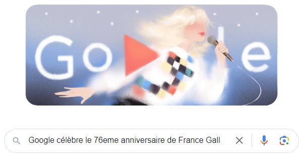 Aujourd’hui, Google a décidé de nous proposer un logo commémoratif sous forme de vidéo. Ce nouveau Doodle célèbre la chanteuse française France Gall, qui est entrée sur la scène Yé-yé à 16 ans et est depuis chanteuse. Le 9 octobre 1947 elle est née à Paris sous le nom d’Isabelle.