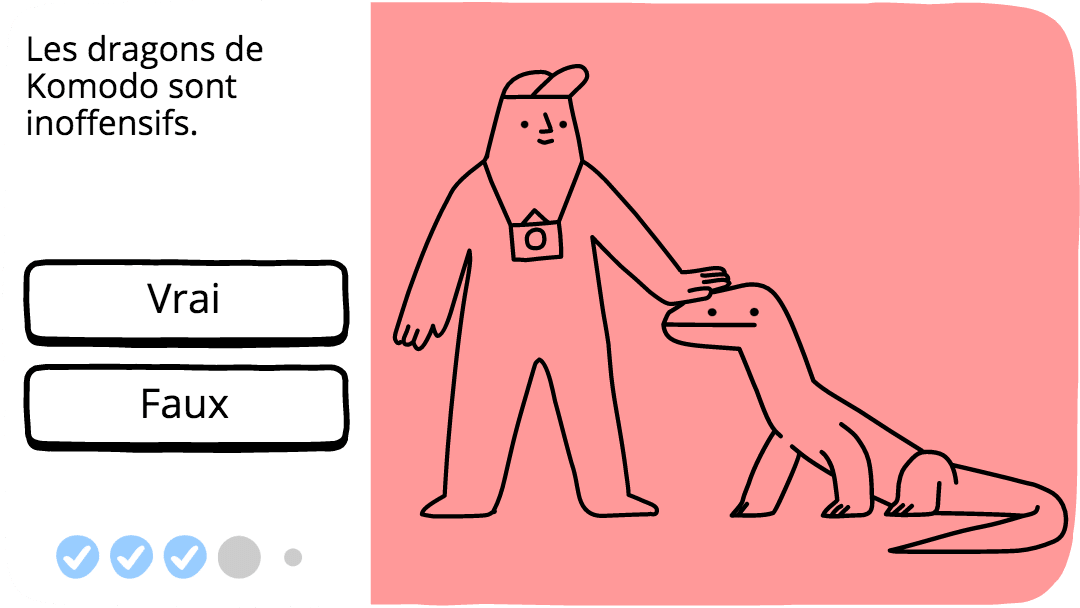 Pour en revenir au Doodle, Google vous pose donc 5 questions sur les dragons de Komodo. Le but est donc d’y répondre par vrai ou faux. A la fin, vous obtiendrez votre score.