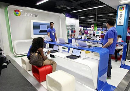 Mais l’idée 1ère de Google n’est pas de rivaliser avec ses concurrents, mais simplement de créer un espace pour faire découvrir ses Chromebooks. Mais derrière tout cela, nous sentons bien que le géant américain est assez frileux, et d’ailleurs, le patron de Google, Arvin Desikan, nous le fait très bien ressentir dans ses déclarations : « C’est notre première incursion dans la vente physique. C’est un nouveau circuit de distribution pour nous et nous en sommes encore aux tous premiers jours. C’est quelque chose que Google va explorer et nous verrons où cela nous conduit » . Maintenant, je ne sais pas si d’avoir fait le choix de se concentrer sur les Chromebooks plutôt que sur les tablettes et mobile sous Android, et quelque chose de très judicieux.
