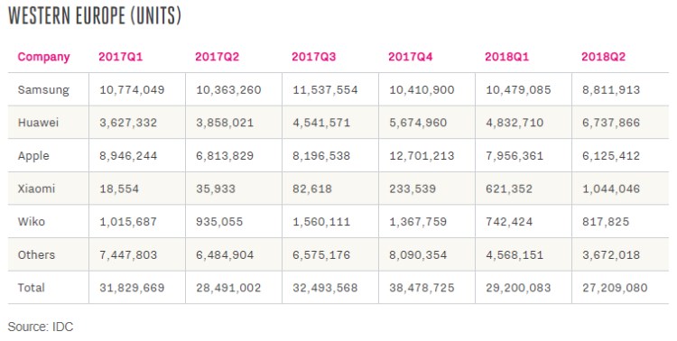 Dans le tableau qui présente les ventes depuis le début de l’année 2017, on voit clairement la progression de la marque Huawei qui est passé de 11% de part de marchés à près de 25%. Cela correspond à un boom des ventes : de 3,6 millions d’appareils vendus au 1er trimestre 2017 à plus de 6,5 millions au second trimestre 2018. Je suis sûr qu’ils sont plusieurs à vouloir présenter ce type de bilan.