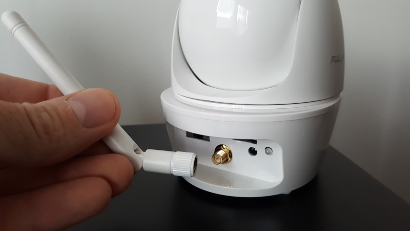 J’en profite pour donner quelques précisions : la prise Ethernet sert pour brancher la caméra en filaire. Dans ce cas, l’antenne n’est pas nécessaire. Inversement, si vous activez le Wi-Fi, l’application vous demandera de débrancher le câble Ethernet. Je trouve que proposer une double connectique est un « plus » du produit. Vous connectez la caméra en filaire mais si vous êtes loin de votre box et que votre installation ne permet pas de la relier ainsi, alors vous pouvez utiliser le Wi-Fi.