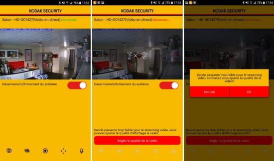 La gestion des notifications est peut être un sujet qui pourrait être amélioré car elles sont assez succinctes et en anglais. De plus, Kodak pourrait en ajouter de nouvelles en plus de celles existantes : activation / désactivation de l’alarme (your Kodak is now armed), détection (motion detection alarm) et enregistrement de paramètres (set email information).