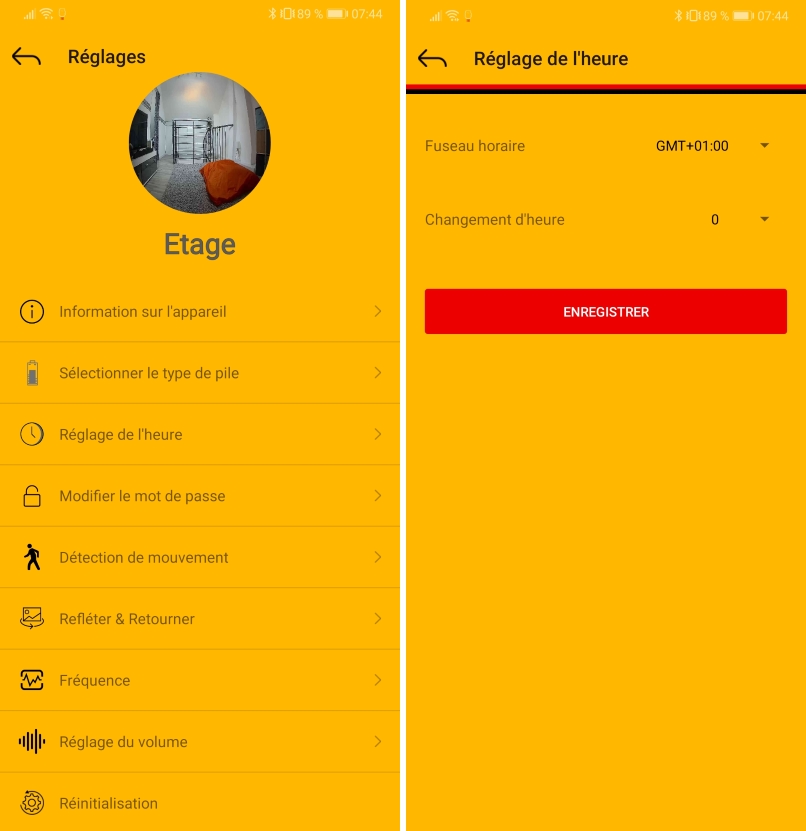 Détection de mouvement : le deuxième, en forme de « + » (avec un bouclier), correspond à la détection de mouvement. Je ne trouve pas le picto très explicite mais ce n’est pas trop grave. En désactivant cette fonctionnalité, vous perdez un peu l’intérêt d’une telle caméra mais disons que cela peut servir quand vous êtes chez vous. Cela évite de recevoir une notification à chaque passage devant l’objectif. Si vous changez un paramètre, n’oubliez pas d’enregistrer votre modification.