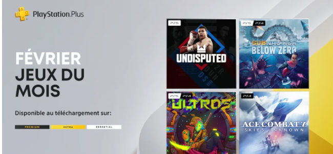 Les jeux du mois sont Undisputed, Subnautica: Below Zero, Ultros et Ace Combat 7: Skies Unknown.