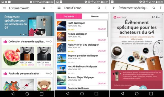 Par rapport à l’interface du LG G3, il n’y a pas de gros changement. La forme des icônes est passée du rond au carré et les couleurs sont plus vives. Personnellement, je préférais les icônes du G3 mais les couleurs donnent un peu de renouveau. Pour les différents écrans de l’interface, les différences restent assez minimes.