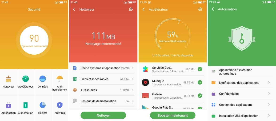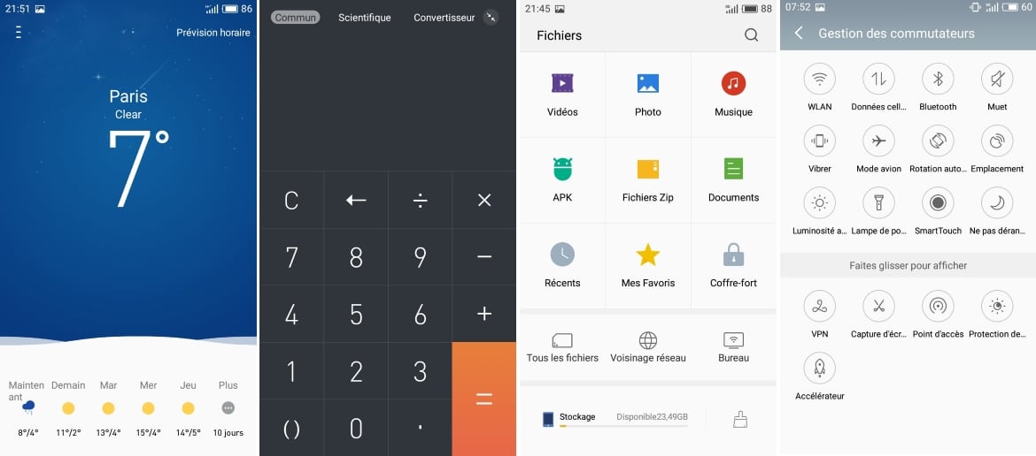 On retrouve les mêmes applications et outils que sur le Meizu U20. Cela signifie qu’il faudra également installer, Gmail, Google Maps ou Chrome si vous êtes habituellement utilisateur du pack Google.