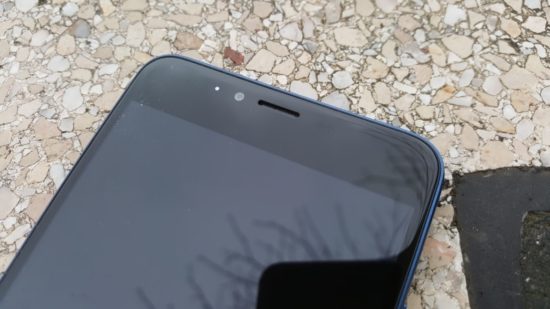 Sur la face avant du smartphone, l’écran de 5,2″ occupe environ 70% de l’espace disponible. Au-dessus viennent se positionner le haut-parleur, le capteur photo spécial selfie et les différents capteurs. Cette zone aurait peut-être pu être un peu moins large.