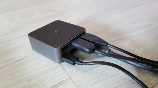 Comme indiqué au-dessus, le Display Dock est un boitier compact de forme carré avec angles arrondis mais finalement assez lourd par rapport à ses dimensions (230g). Le premier contact est plutôt bon : le design est sobre mais efficace et le châssis en aluminium procure une impression de qualité.