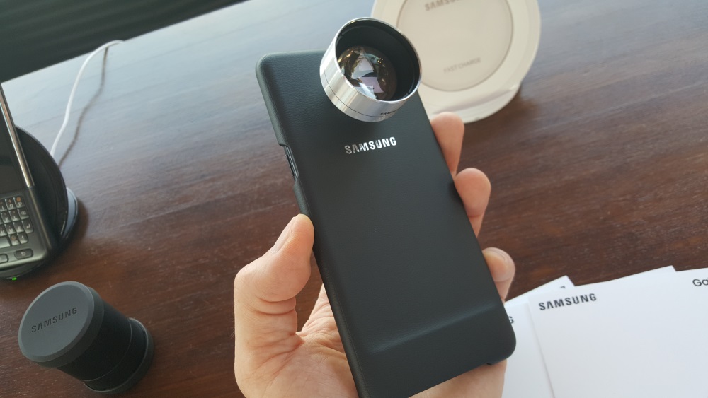 Le Galaxy Note7, ce n’est pas seulement un smartphone. Il existe tout un univers qui gravite autour de lui. Cela passe par des accessoires tels que se nombreux étuis aux propriétés différentes (S View Standing, Led View, Clear View), une station de chargement sans fil, des batteries (coque batterie ou batteries externes), un clavier externe semblable à celui proposé pour le Galaxy S6 Edge+ et aussi des objectifs pour son capteur photo principal (Zoom et Grand Angle). Il ne faut pas non plus oublier le nouveau bracelet de la montre, le Gear Fit 2 ainsi que le nouveau casque Gear VR.