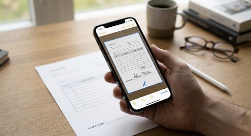C’est sans doute ce qui a le plus changé mon quotidien. Je n’attends plus d’être devant mon bureau pour gérer ma paperasse. Je reçois une note de frais au restaurant ? Je la scanne avant même de quitter la table. Un contrat à renvoyer ? Je le numérise, je le signe numériquement sur mon écran et je l’envoie en moins d’une minute, que je sois dans le train ou dans mon canapé.