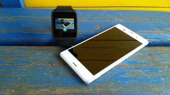 La SmartWatch 3 avec son compagnon de test, le Xperia Z3