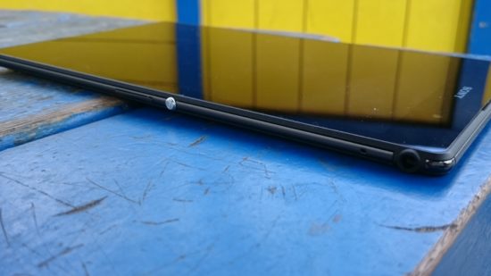 Depuis le temps que je me disais qu’il fallait que j’essaie une tablette compatible 4G. C’est chose faite. Vous vous demandez à quoi cela peut-il bien lui servir ? Vous vous dites : Il ne va pas appeler avec quand même. Non mais je pourrais, avec le kit mains libres ou une oreillette bluetooth. En fait, il n’y a rien de mieux que de pouvoir continuer la rédaction de son article dans les transports, tout en restant connecté. Avec la Z3 Tablet Compact, vous disposez d’un appareil de taille idéale pour lire et écrire, et en plus léger et connecté. Que demander de plus ? Qu’elle soit mienne… Oui mais pour le moment, c’est un prêt et je vous fais partager mon expérience. Revenons sur cette trappe. Le cache s’enlève facilement, ce qui n’est pas le cas pour le tiroir de la carte Sim mais maintenant, je maîtrise le sujet, après m’être fait la main sur les smartphones de la gamme. Il existe une autre trappe mais elle se situe dans la tranche du bas et elle dissimule le port micro USB.