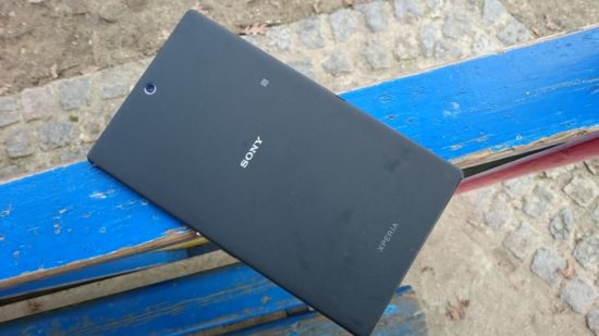 Au dos de la tablette, ce sont le logo Sony et le pourtour en métal de l’APN qui contrastent avec cette robe noire et mat.