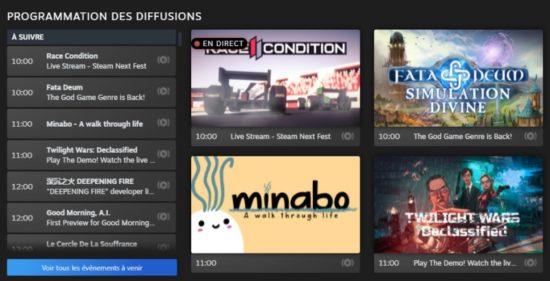 Déjà, durant toute cette période, vous pouvez assister à des diffusions en direct. A titre d’exemple, vous êtes en mesure de visionner les équipes de développement jouer à leur titre. Vous pouvez même discuter avec eux via un tchat. Tout se déroule sur le site web Steam.
