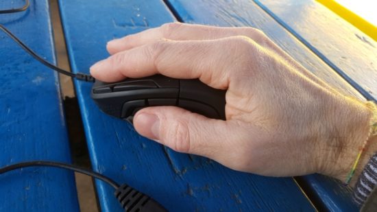 Même si la souris peut paraître imposante, elle trouve très bien sa place au creux de la main et surtout, elle reste légère, ce qui facilite la prise en main et les manipulations. De plus, les différentes matières proposées, dont une zone de type « grip » sur le côté droit, permettent un bon maintien.