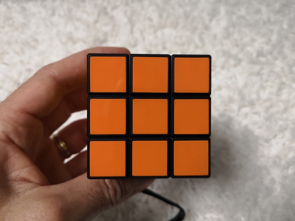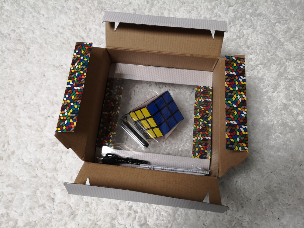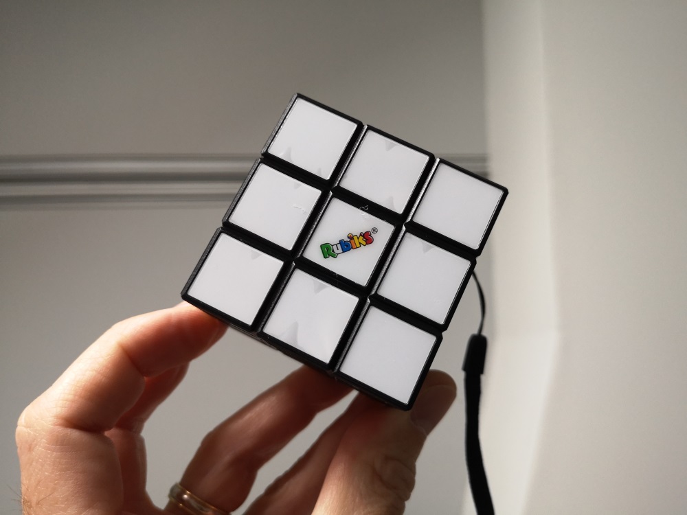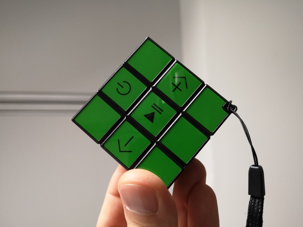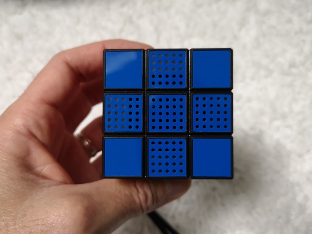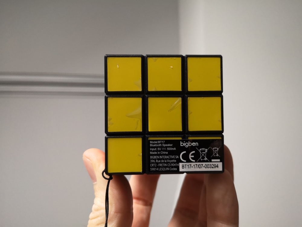 En tenant l’enceinte entre les mains, on a réellement l’impression de tenir le casse-tête. A première vue, rien ne le distingue de l’incontournable Rubik’s, même le logo est présent sur la face blanche.