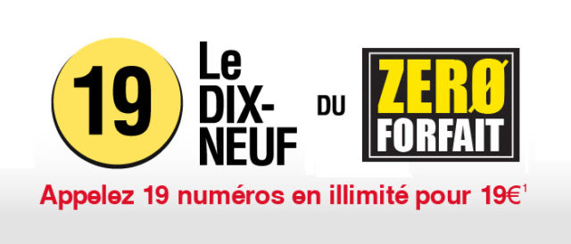 Je vous ai déjà parlé de l’opérateur virtuel Zéro Forfait début mars lors du lancement de son forfait Eco50, qui pour 9,90€/mois, propose 50 minutes d’appels et 50 SMS! Ce forfait avait été lancé lors du lancement du Tarif Social Mobile par le Gouvernement et Zero Forfait avait alors proposé pour le même coût, 10 minutes et 10 SMS de plus que les préconisations faites par le Gouvernement. Le MVNO Zero Forfait, toujours soucieux « de diminuer considérablement les coûts d’utilisation pour les consommateurs« , a lancé la semaine dernière, le 19, un forfait proposant les appels illimités vers 19 numéros de téléphone basés en France Métropolitaine, Corse et Monaco, pour 19 euros par mois. Pour ce prix donc, seuls les appels sont compris. Mais il est possible, en ajoutant 2€ par mois, de bénéficier des SMS en illimités toujours vers ces 19 numéros. Pour ce qui est d‘internet, il est possible d’y accéder de manière illimitée là aussi pour 10€ de plus par mois, le débit étant réduit au-delà de 250Mo/mois. Les 19 numéros sont automatiquement mis à jour par l’opérateur chaque mois en fonction des numéros les plus appelés par l’utilisateur le mois précédant. Ce qui est difficile à comprendre, c’est l’histoire des appels en dehors des 19 numéros, puisqu’apparemment les numéros supplémentaires seront facturés maximum 1€, je ne comprends pas où Zero Forfait peut s’y retrouver. Dernière chose, le 19 est une offre sans engagement.